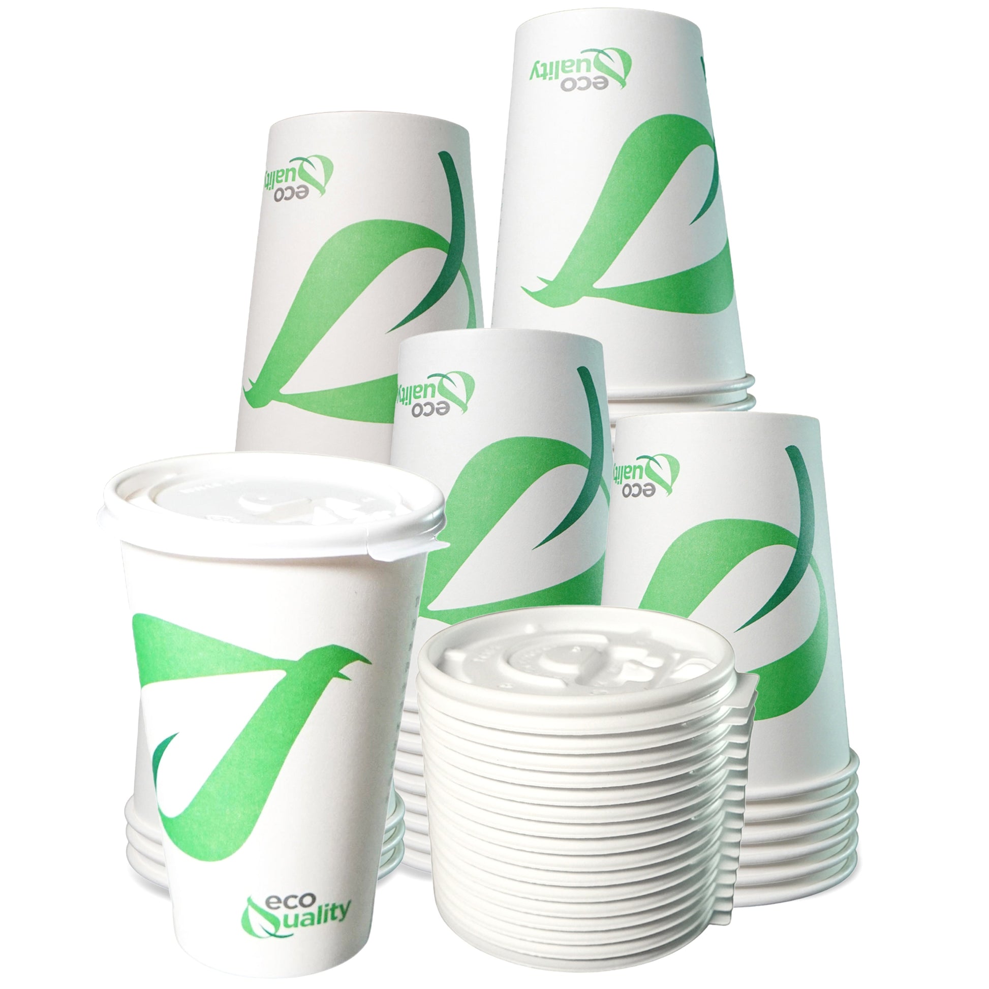 EcoQuality Branded hot paper tea cups are lined with a sustainable plant based starch. Which makes this cup a guilt free option, 100% natural and sustainable. Can be composted in a commercial facility. The perfect alternative to traditional plastic and wax lined paper cups.