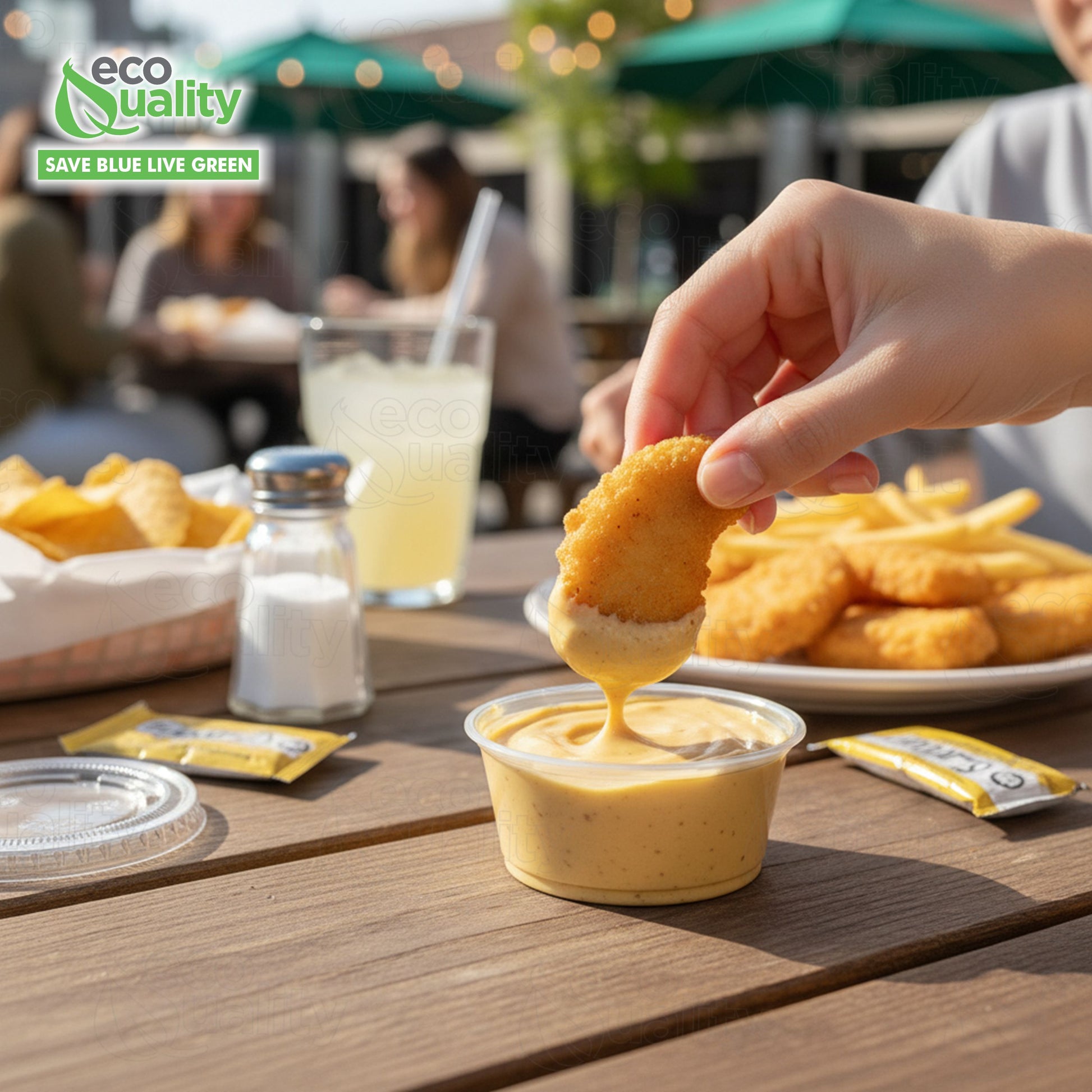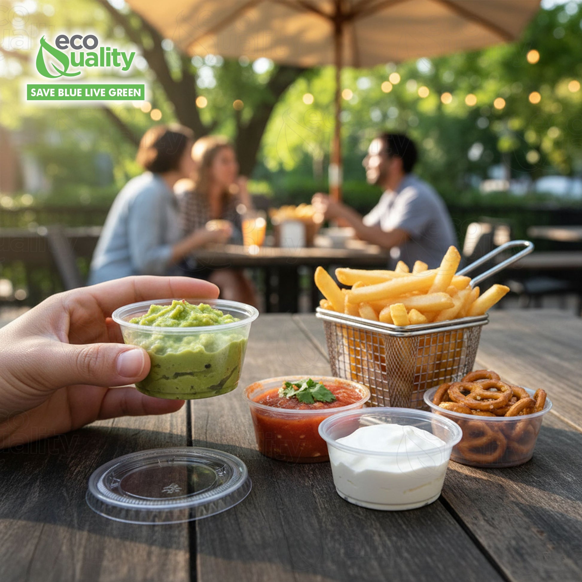 This cup is the perfect choice for providing customers with everything from ketchup, food samples, cosmetics, on the go. Now with secure lid, its stackable for easy storing and transport. This cup is made to help control portion sizes of your condiments, minimizing waste and saving on costs. It is great for use in delis, restaurants, and cafes. Plus, its eco-friendly design will help your establishment reduce its carbon footprint while retaining the convenience of single-serve use