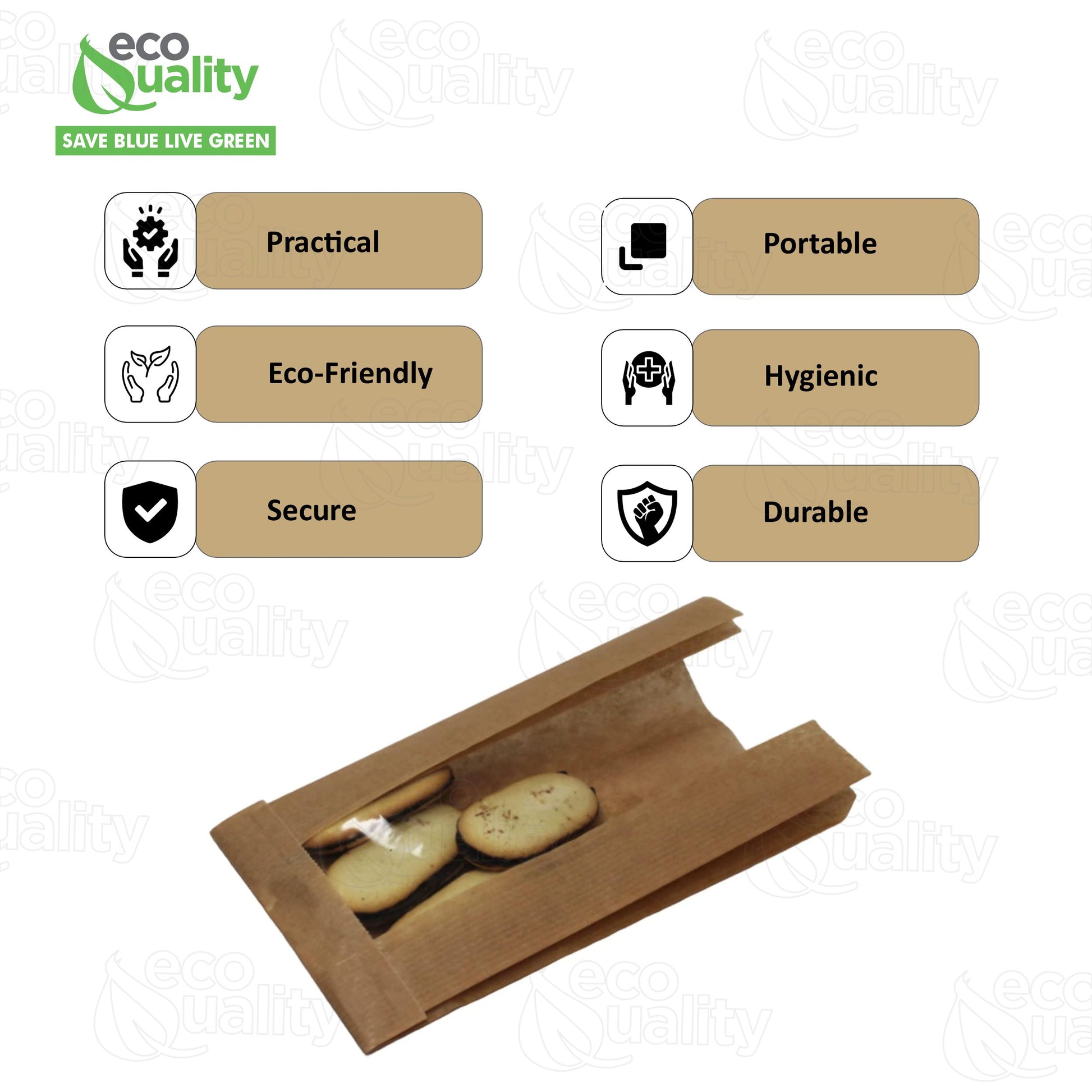 This bag's crystal-clear viewing window keeps your freshly prepared goods front row and center. It's perfect for hot or cold displays at bakeries, cafes, delis, or to store your favorite snacks. The grease-resistant paper reduces greasy residue on the exterior of the bag. The non-printed, recycled natural kraft construction of this bag contributes to a clean, professional, and appealing food presentation. Take advantage of on-the-go advertising and upgrade the design of this bag by personalizing it with your business logo name or special event.