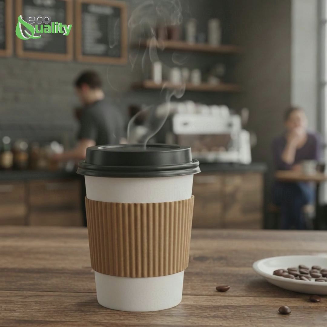 Disposable Travel Black Dome and White Dome Lids for Paper Hot Cups (10oz, 12oz, 16oz, 20oz)