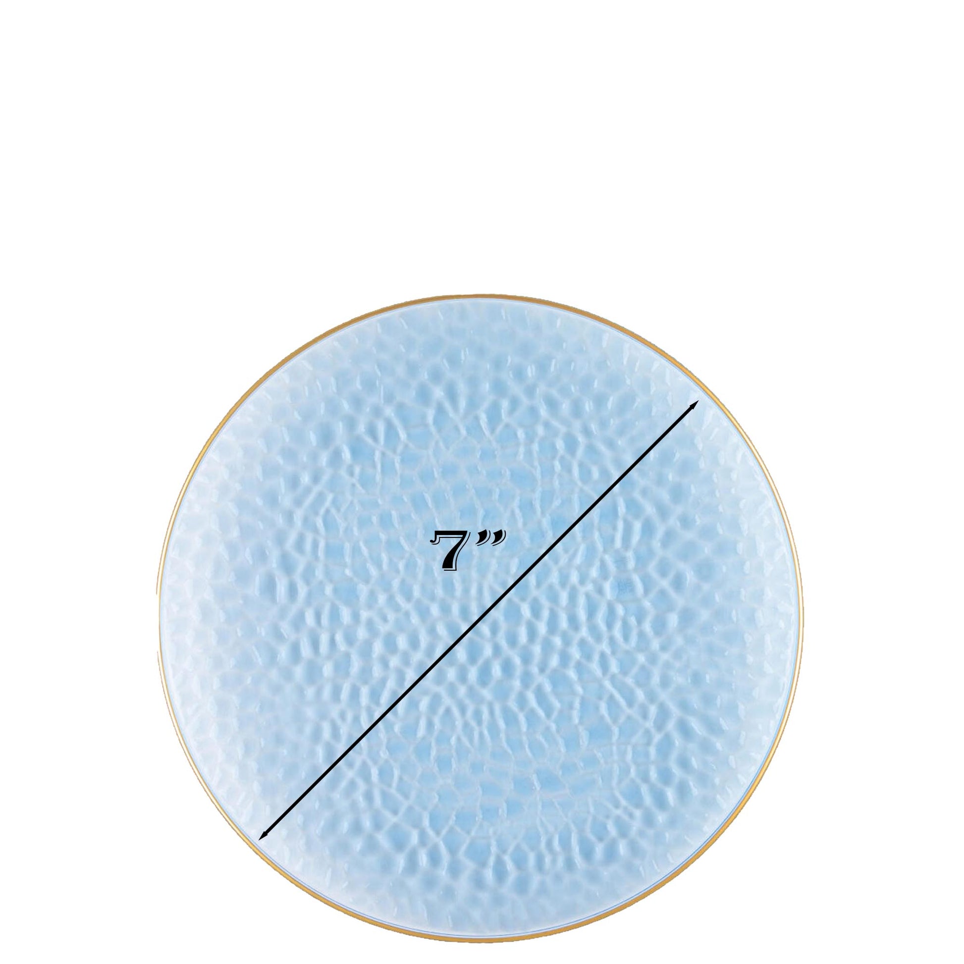 This Organic Hammered Blue Gold Rim elegant dinnerware party collection is great for all occasions . You can serve great family dinners, birthdays, celebrations, weddings, receptions, baby showers, banquets, Thanksgiving, Halloween, Christmas, Family celebrations, Business dinners or any where you want your guest to feel welcomed. Our plates feel and look like glass china without the worry of cleaning and breaking. Easily dispose by throwing in your recycling bin or hand wash and reuse!