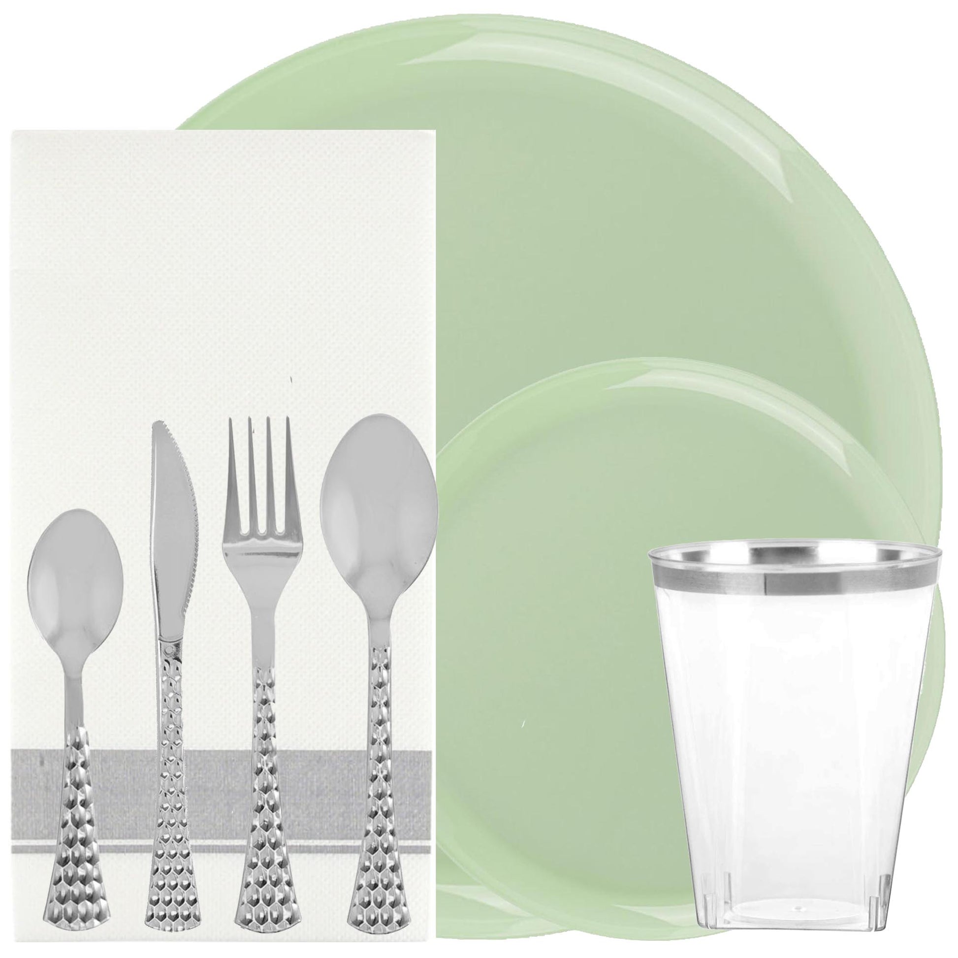 Plastic Tableware Mint Green Plates Edge Collection Dinner Party Set