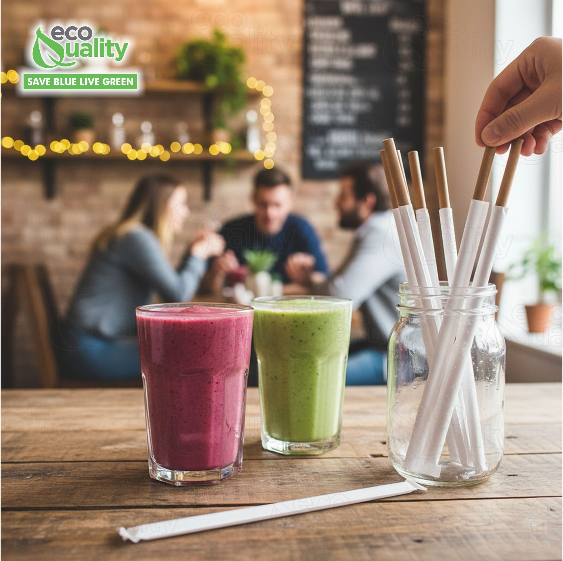 • VARIETY OF APPLICATIONS: Our wrapped easy to carry and dispose eco friendly straws make for a great addition to your daily drinks such as smoothies, juices, shakes, iced coffee, boba and much more! Used by many restaurants, cafes, hotels, coffee shops, juice bars, gyms, birthdays, baby showers, weddings picnics , cake pops and more!